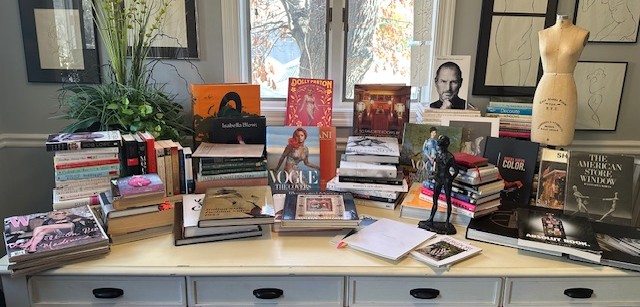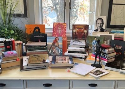 Large collection of unique coffee table books including Fashion, Art, Cooking, Bar Tending, Entertainment, and more.