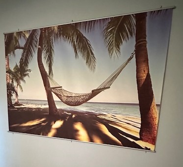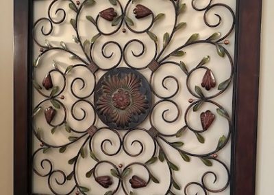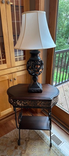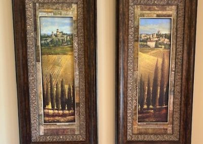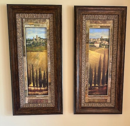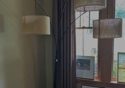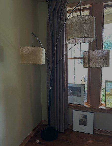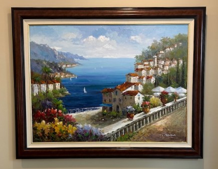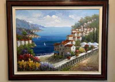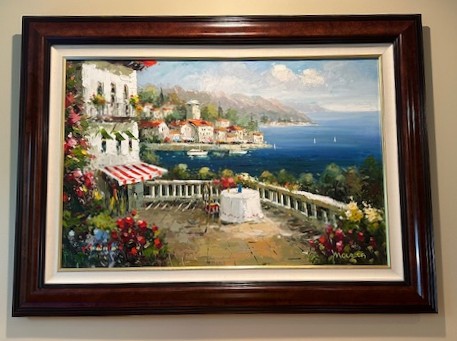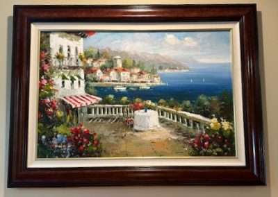 Many table lamps, Verilux floor lamp, floor lamps, rugs, Mediterranean Oil on canvas 44×35 with frame and 56×45 with frame.
