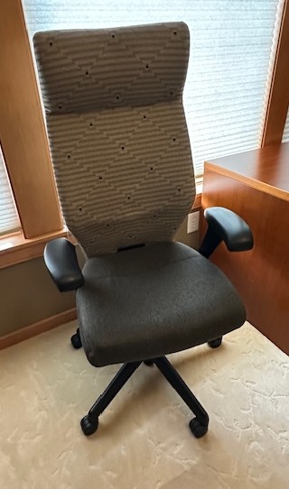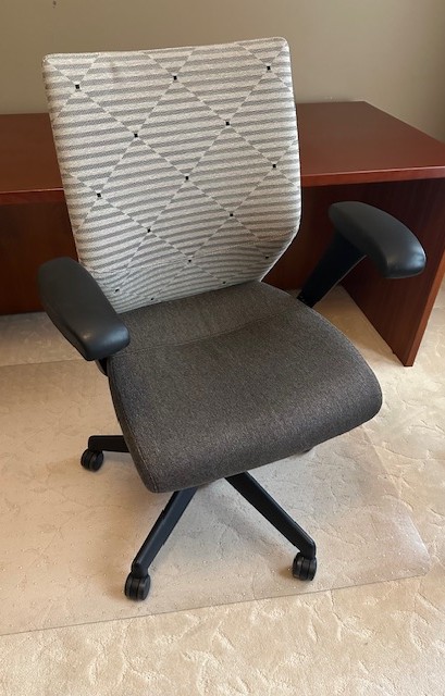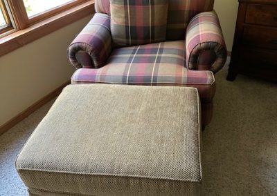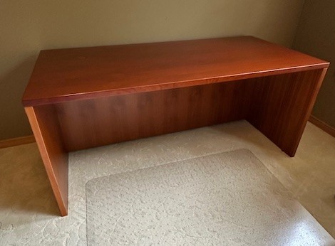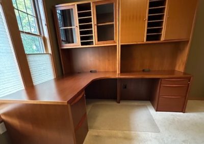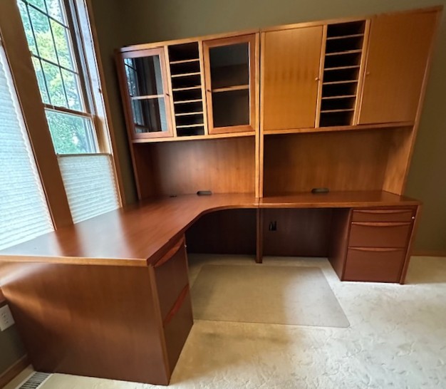 Sofa with ottoman, arm chairs, 2 office cherry wood Jesper desks, side tables,