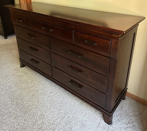 Kincaid bedroom furniture, King Size bed with Select Comfort mattress, dresser and side tables.