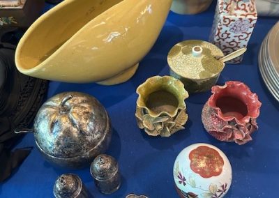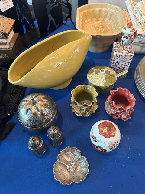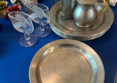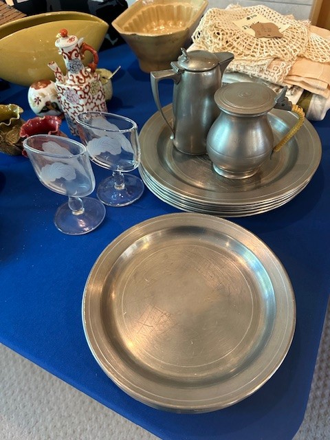 Sterling Silver Platter, Sterling Silver jam jar, antique toothbrush and baby spoon.
